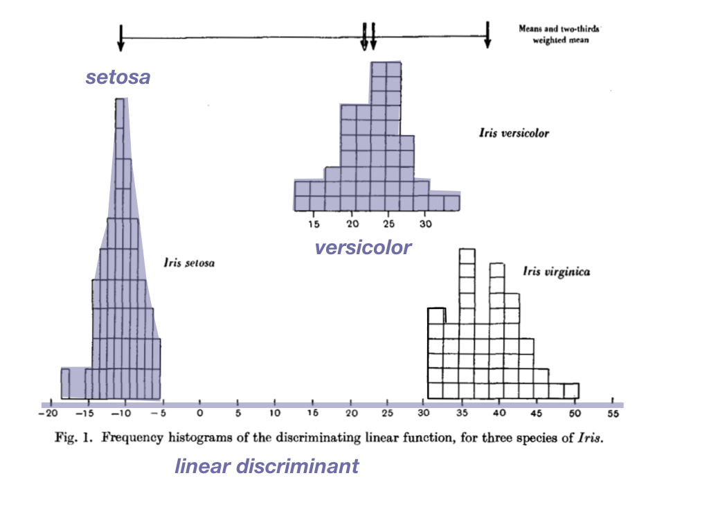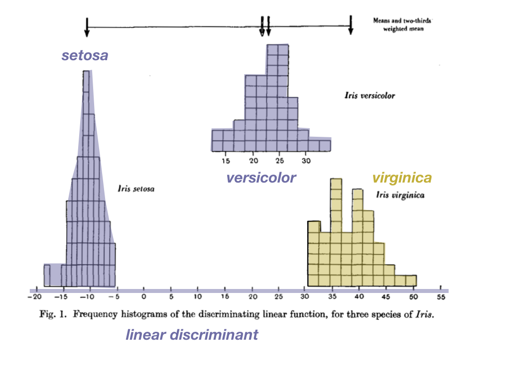 The iris data was introduced to the data science community in Fisher (1936), in order to illustrate his new method "Fishers linear discriminant".