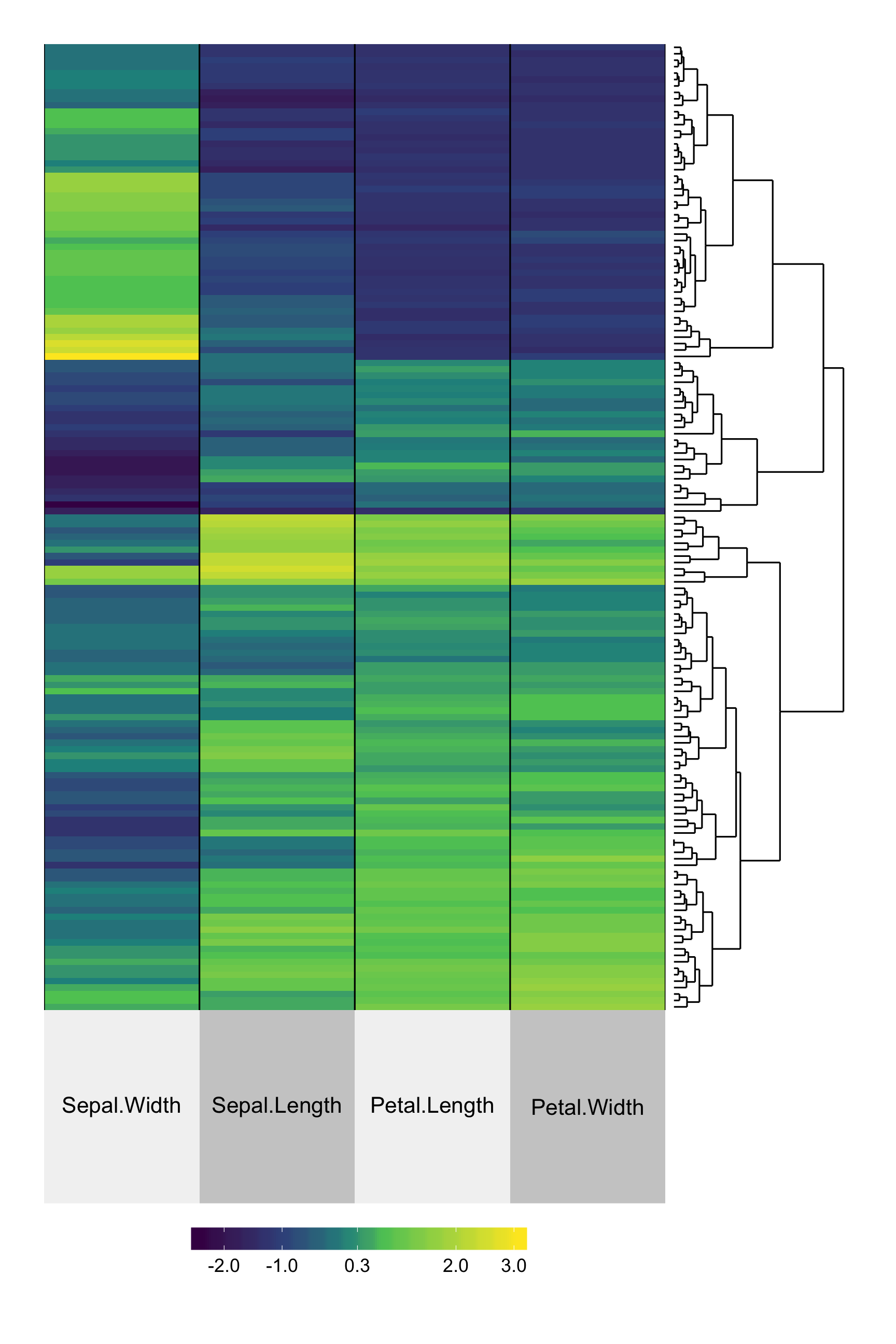 Show the data matrix, with rows and columns sorted by some criteria. Colour the cell according to the numerical value.