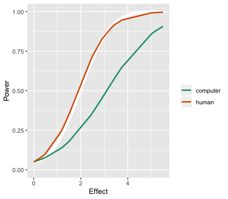 Power analysis of human evaluation relative to classical test.