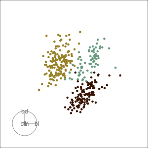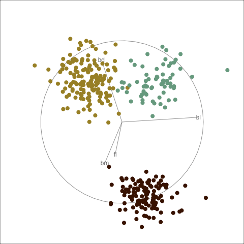 • LDA/PDA: An index based on the linear discriminant dimension reduction (and penalised), optimised by projections where the named classes are most separated.